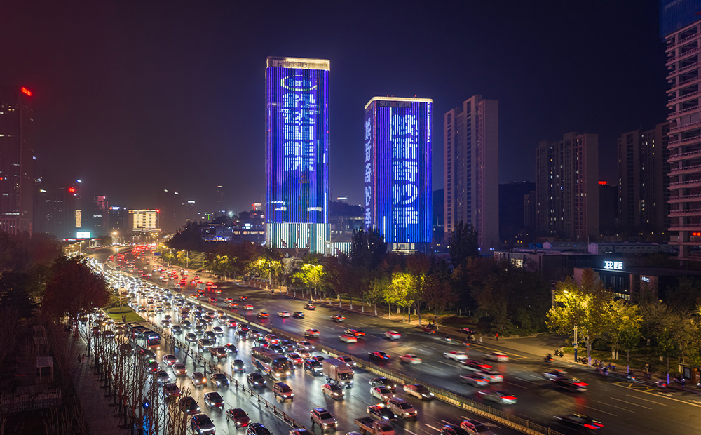 【媒体名称】济南经十路·城发成家财富中心双塔灯光秀